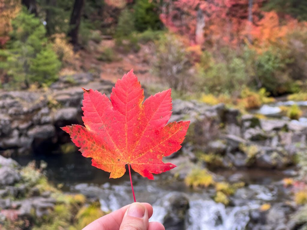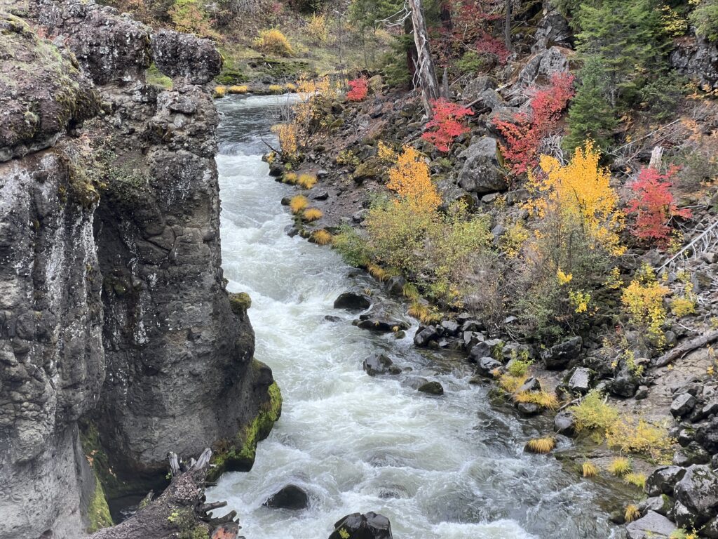 For some of then best fall foliage around, follow the Rogue River to Prospect and hike along the Upper Rogue River Trail #1034. Beginning at the Woodruff Bridge Picnic Area, the 3mi roundtrip hike to Takelma Gorge passes vibrant vine maples, old growth conifers, and incredible volcanic geology. The gorge features a 90 degree “fish hook” as the river makes a sharp turn through deep pumice cliffs, evidence of Mount Mazama’s explosion. For those wanting a longer hike or even a multi-day adventure, the Upper Rogue River Trail is 43 miles long in its entirety and offers multiple access points where hikers can view the Rogue Gorge, Natural Bridge, and cascading waterfalls.