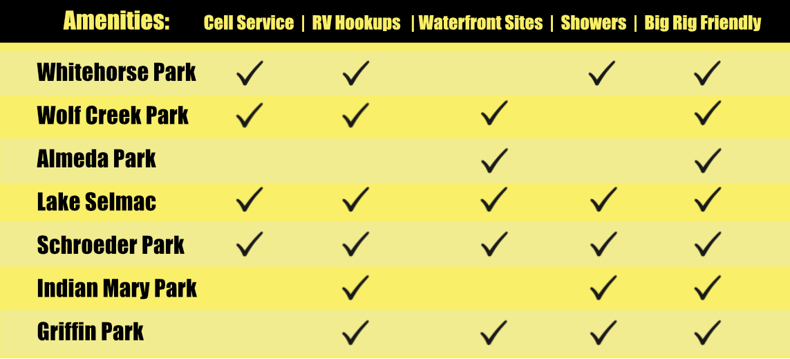 Conveniently located just 7 miles west of Grants Pass, Whitehorse Park offers campers a quiet reprieve from the city without straying too far from town. With 42 RV, tent, and yurt sites, campers can spread out under the towering shady trees that encompass the park. For those who enjoy wildlife you’ve come to the right place. The park has one of the area’s most treasured bird sanctuaries, with more than 170 species recorded, and some great trails that will lead you down to the river for a better view. Enjoy the day use area for a picnic or even a large family event. If you are hoping to get some work done while on your camping trip, you’re in luck. Remote workers will find good cell reception at camp.