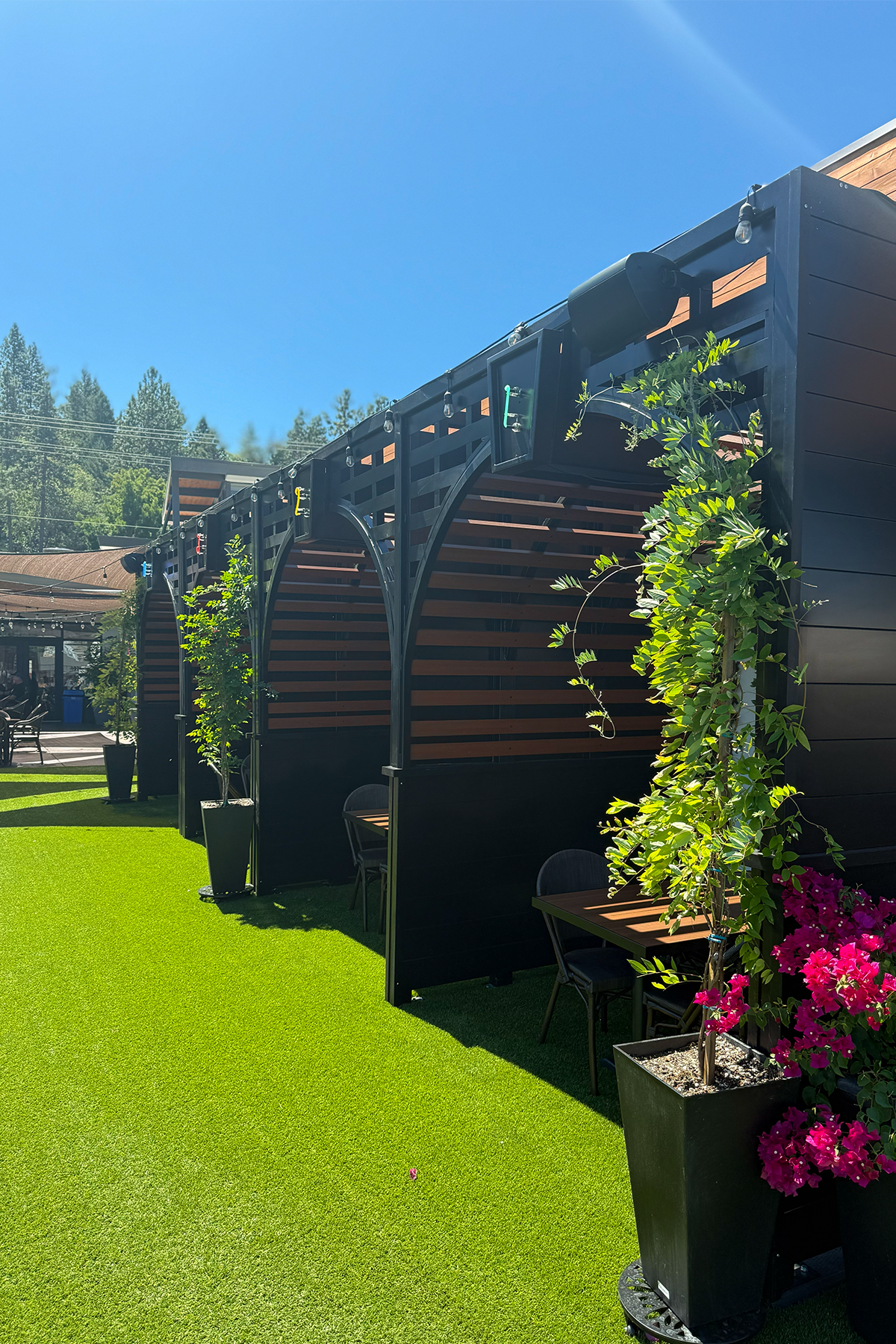 - Outdoor covered booths for private dining